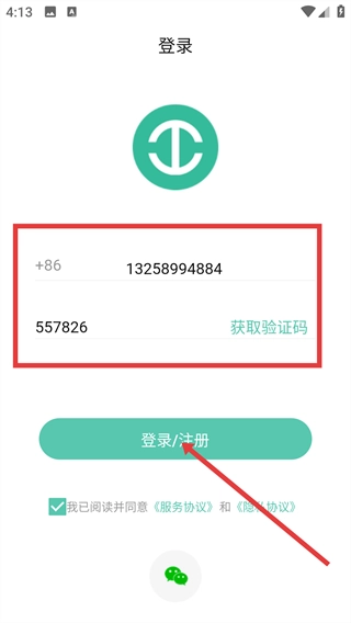 2、进入登录页面,输入手机号,点击【获取验证码】,填入验证码后,勾选同意协议,点击【登录/注册】按钮完成登录或注册操作。