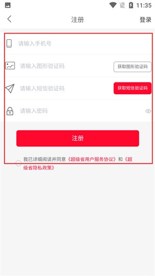 4、注册页面需填写【手机号】,获取并填写【图形验证码】【短信验证码】,点击【注册】完成账号创建。