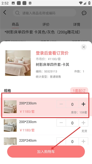 4、选择商品规格后,再次点击【加入购物车】完成操作。