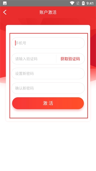 4、在账户激活页面,依次输入手机号、验证码,设置并确认新密码后点击【激活】按钮,即可完成账户激活。