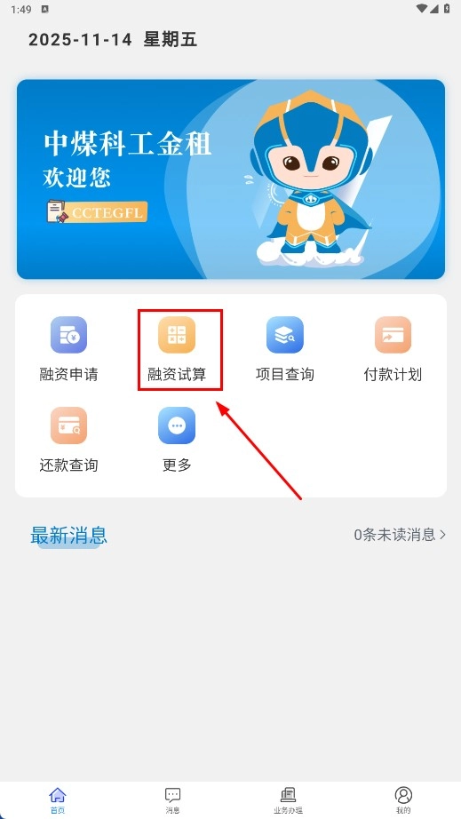 1、点击【融资试算】功能按钮,进入融资计算器页面。