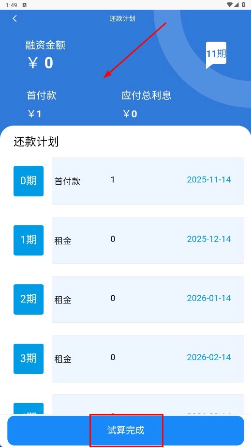 4、计算完成后,可查看还款计划,点击【试算完成-功能按钮】完成操作。