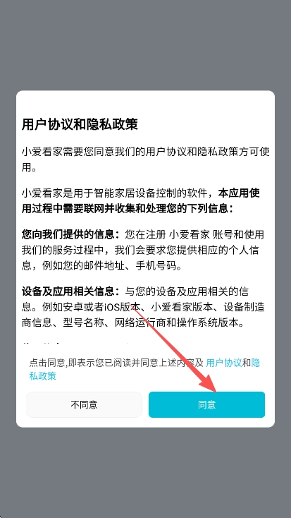2、同意小爱看家的用户协议