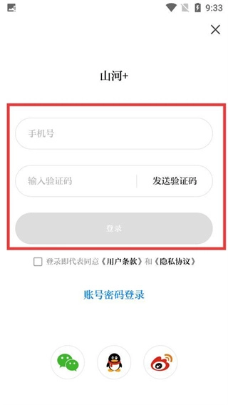 3、在登录界面,可选择验证码登录方式,需填写【手机号】并获取【验证码】,勾选协议后提交。
