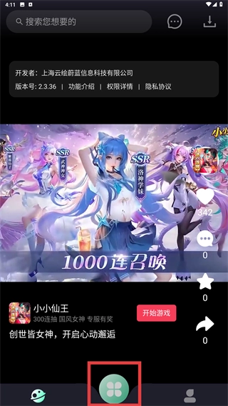 1、点击底部的功能按钮,即可进入应用推荐列表页面。
