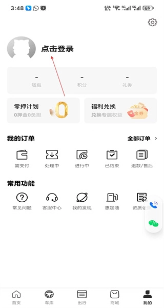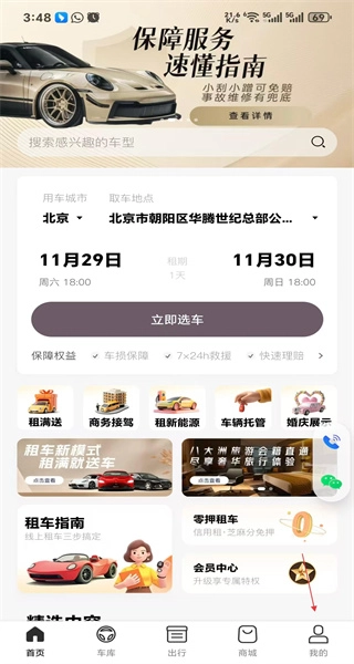 打开软件后,首页设有保障服务和车型相关的板块,点击底部的“我的”按钮,即可进入对应的个人操作页面。