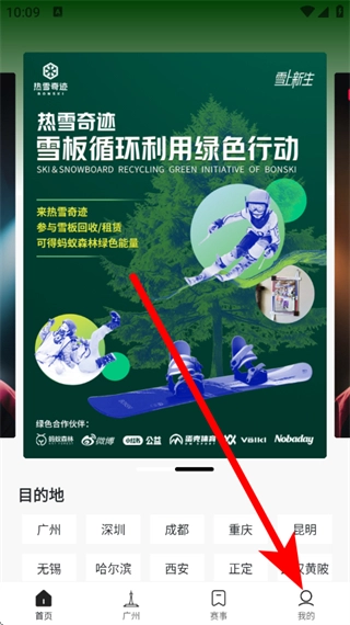 1、打开热雪奇迹应用,点击底部导航栏的“我的”选项,进入个人中心页面。