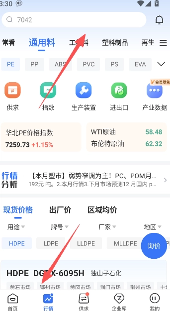 1、若想通过专塑视界查询最新报价,可前往行情页进行搜索查看。