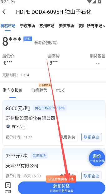 3、点击解锁价格,认证后查询报价信息。