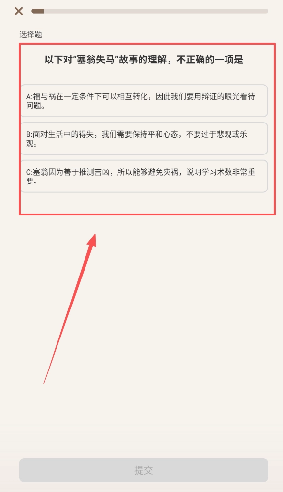 3、仔细阅读系统提供的文言文阅读材料并理解文章大意,随后点击去做题按钮正式进入答题环节。