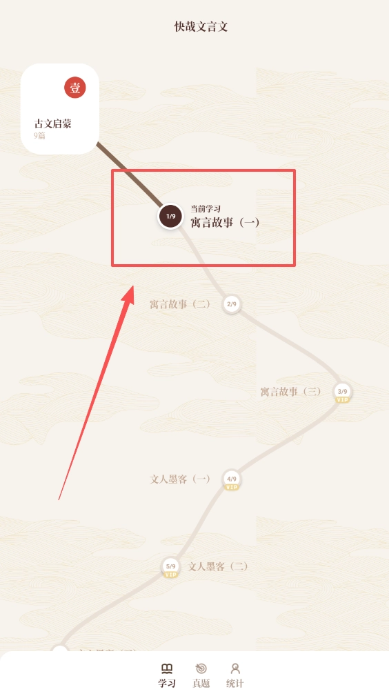 3、提供了个性化的学习路径规划服务,根据使用者设定的目标与当前水平推荐合适的古文学习顺序。