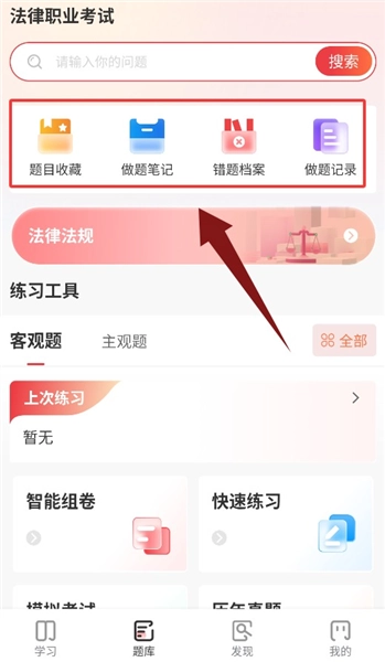 3、题库界面提供题目收藏、错题归档、做题笔记与记录查询。