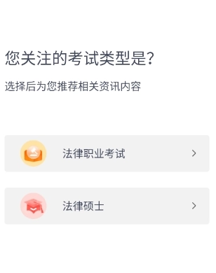 4、然后出现“你关注的考试类型是?”选择界面,点击选择后进入下一步