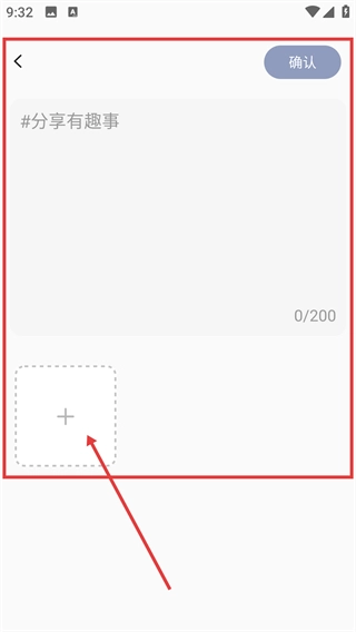 3、在动态发布页的输入框填写内容后,点击下方的加号按钮,就能打开相机胶卷选择要上传的图片啦。