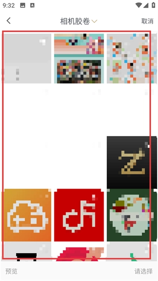 4、在相机胶卷界面选择要分享的图片,选好后就能回到发布页继续完成动态的发布流程啦。
