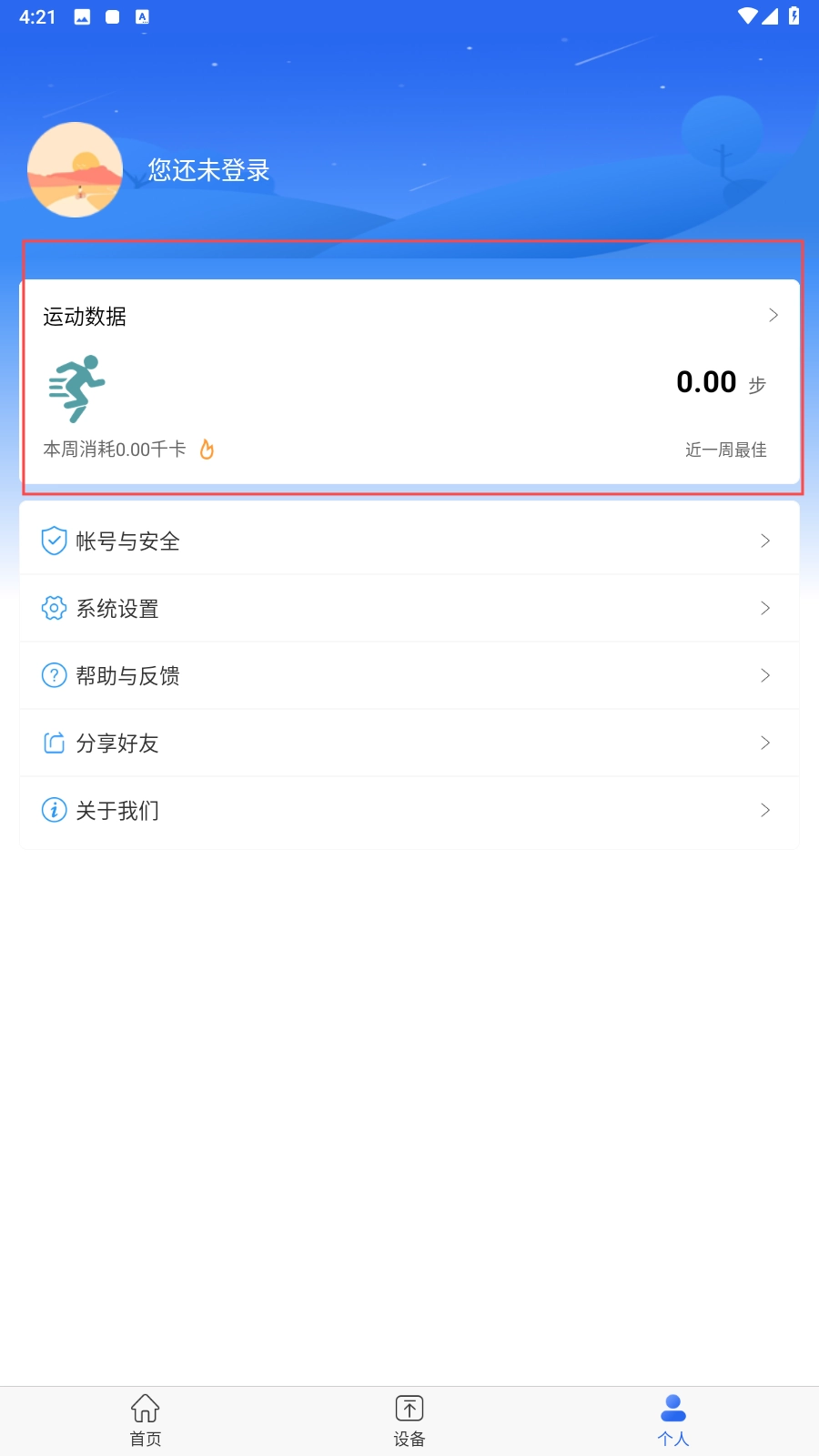 3、点击【个人】可以查看近一周所消耗的卡路里和步数等。