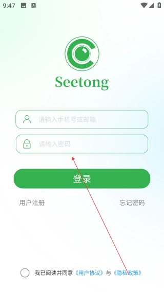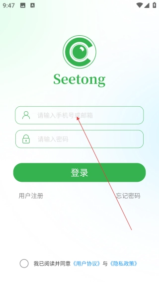 1、启动Seetong应用,点击界面上的【请输入手机号】输入框。