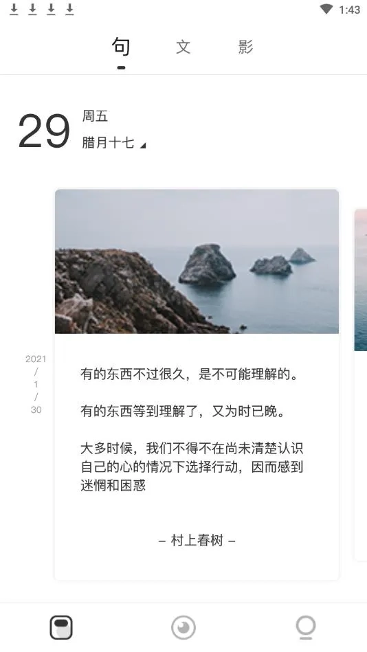 3. 每日精选语录、好文、影评等,篇篇经典,能让人沉浸艺术世界,增长见识,升华灵魂。