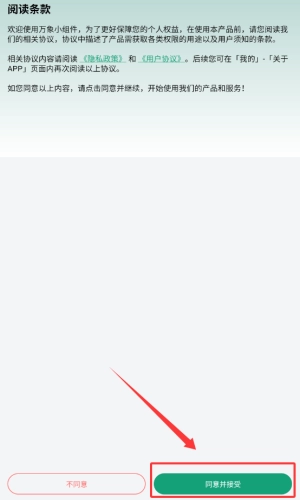 1、点击“同意并接受”按钮,完成授权后即可进入应用。