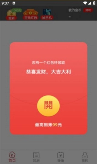 3、打开软件就能轻松领取红包奖励,还能免费观看各类短视频。