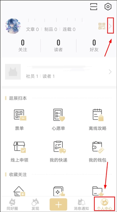 1、登录CPP无差别后,点击底部的【我的】进入【个人中心】页面,接着点击页面右上方的箭头,即可进入个人主页。