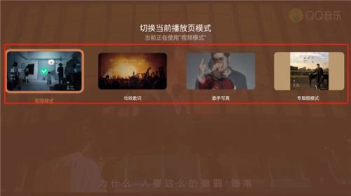 6、还可以选择“播放页模式”,其中包括:视频模式、动效歌词、歌手写真、专辑图模式。