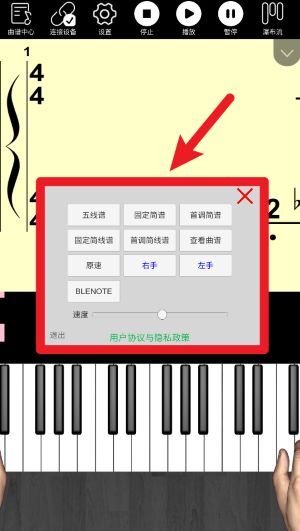 3、在设置界面中能够选择多种谱面显示模式,涵盖五线谱、简谱,还具备左右手切换的功能。
