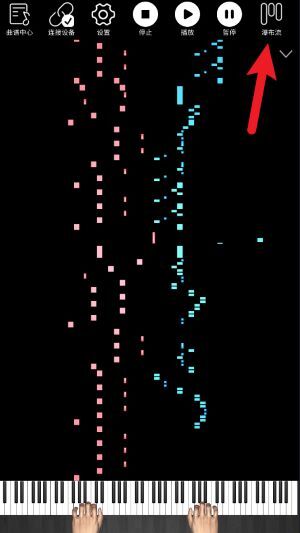 4、点击瀑布流模式后,即可切换至动态下落的音符视图,让练琴的视觉体验更具沉浸感与趣味性。