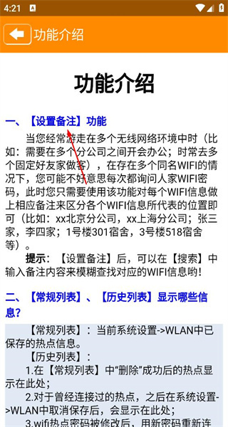 2、前往功能介绍页面查看设置备注功能的相关说明,以了解该功能在存在多个同名WiFi的环境下,能够起到区分不同位置的作用。