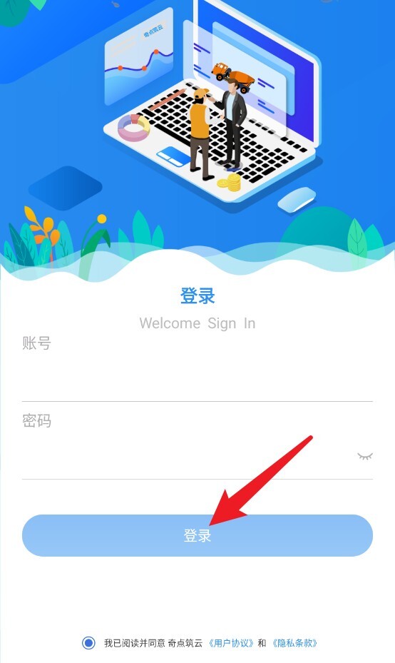 1、打开应用后,输入账号和密码,点击蓝色按钮,就能完成登录并进入系统主页面。