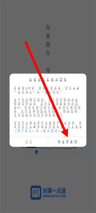 1、打开时事一点通,在弹窗中,点击同意并使用。