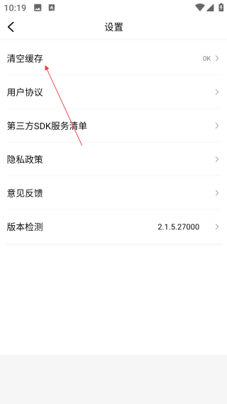 3、在设置页,点击【清空缓存】选项,触发清除缓存的确认提示框。