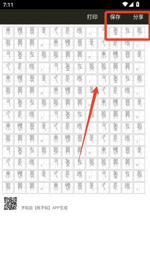 完成练习后,你可以一键保存自己的字帖作品,还能分享给朋友,或者利用拍照取字功能来打印。
