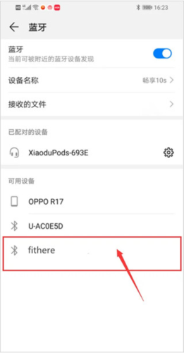 3、我们在搜索到fithere手环的蓝牙后,点击即可进行连接。