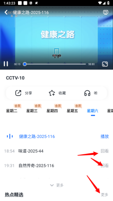 直播视频具备“回看”功能,进入直播页面并选定频道后,即可查看一周节目单,您只需点击已播出节目名称旁的“回看”按钮,就能观看近期的已播出视频。由于存储容量限制,回看视频仅会保留一段时间,因此建议您尽快观看。