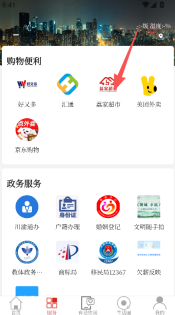 2、进入服务板块,选择购物便利或政务服务功能使用。