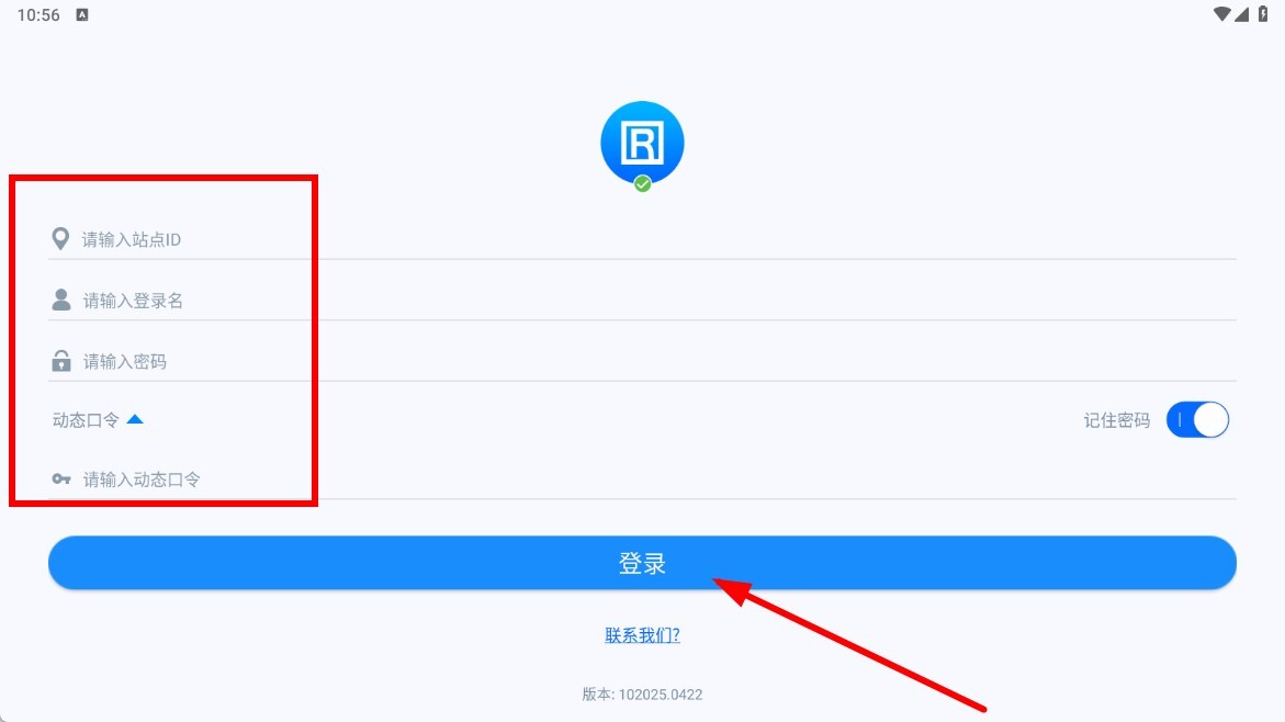 3、进入登录页面后,依次填写站点ID、登录名、密码和动态口令,随后点击【登录】功能按钮。