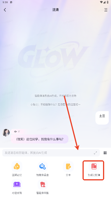 智能AI助手的个性化对话服务: Glow的AI助手可以依据用户的聊天习惯与偏好,输出具有个性化的对话内容。不管是日常闲聊、情感沟通,亦或是知识问答,AI助手都能作出恰当的回应。