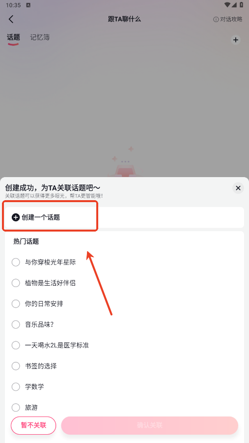 3.点击去关联话题,或者右上角的“+”都可以创建话题。