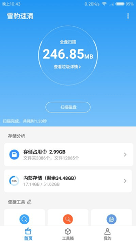 1.雪豹速清具备强劲的清理性能,能协助用户高效地清理手机垃圾,释放设备存储空间,还能对手机文件进行有效的管理。
