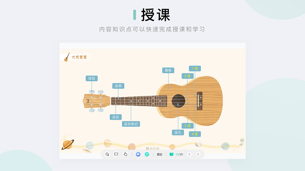 老师在课堂授课时,会结合系统教材内容与课件展开教学,同时还能借助音乐窝智慧电视,通过手机或ipad进行投屏控制,实现课件同步展示,以此丰富课堂互动形式,进一步提升学员的学习兴趣。