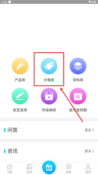 2、在功能主页,点击【价格库】图标,进入疫苗价格查询的对应功能模块。