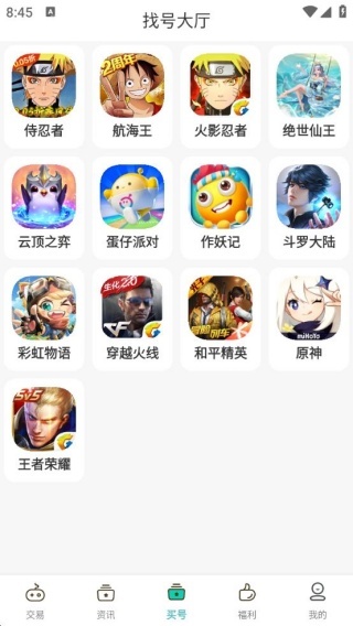 3、进入到找号大厅,有各种热门游戏的账号提供。