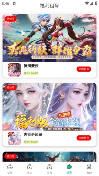 4、福利租号,价格实惠,让你轻松就可以开启游戏畅玩操作。