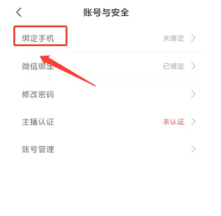 2、进入账号与安全,点击【绑定手机】