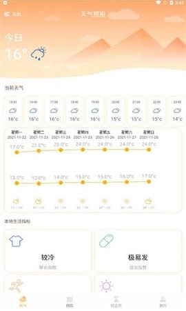 这是一款功能强大的天气预报软件,是大家日常出行不可或缺的工具。它提供全面的天气信息,覆盖全国各个城市地区,无论你身处何地,都能通过软件查看当地天气。软件还提供各时段及未来一周的天气数据,所有天气情况清晰明了,有了它,出行更安心。