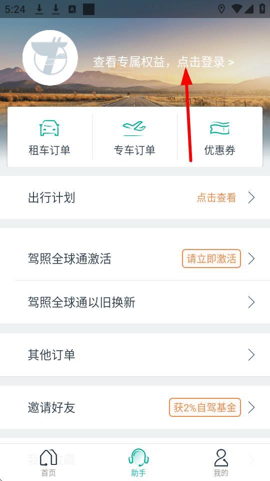 2、在【我的】页面点击【查看专属权益,点击登录】。