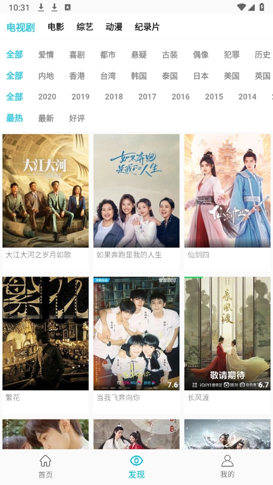 2、首页平台为用户提供了丰富多样的影视剧集,涵盖电视剧、电影和综艺等多种类型。