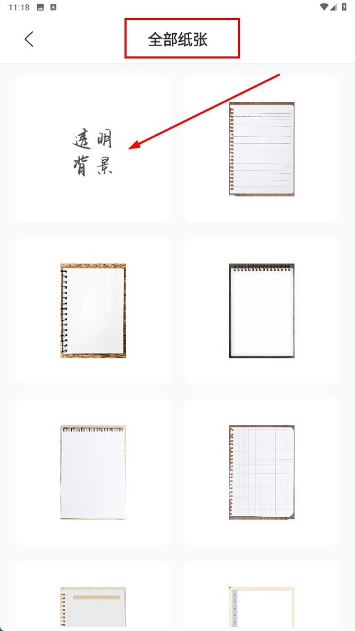 3、进入全部纸张页面,选择【透明背景-纸张样式】。