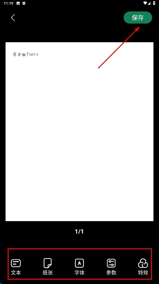 4、设置好文本、纸张等参数后,点击右上角【保存-功能按钮】完成操作。